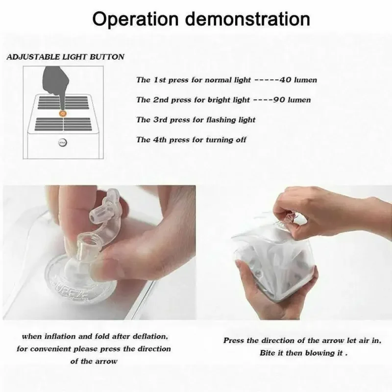 High brightness white light with 10 LEDs, inflatable and eco-friendly.